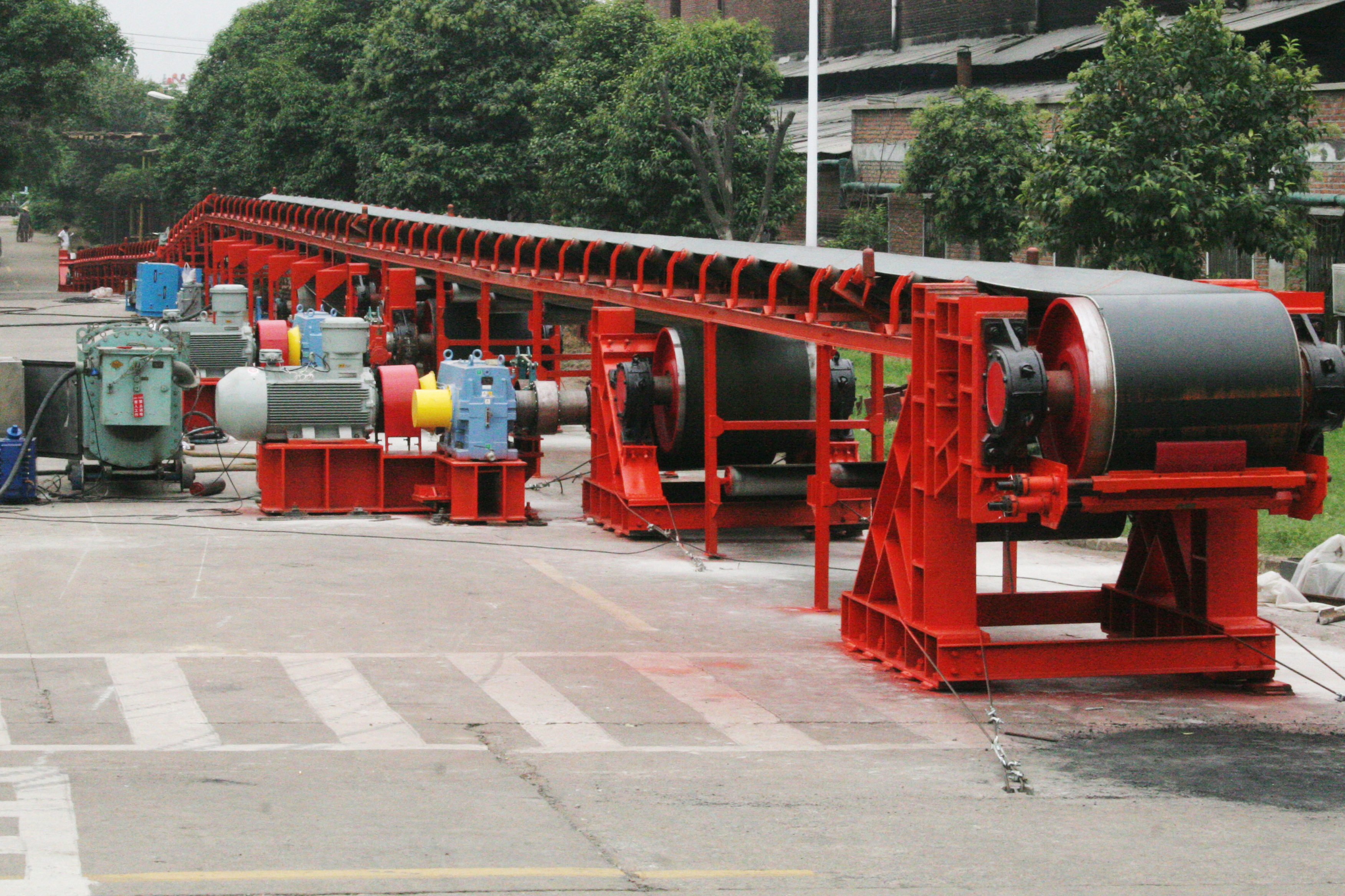 6、尾部(bù)裝配的螺旋拉緊裝置應調整適宜,保持輸送帶具有正常工作的拉力。看管人員(yuán)應(yīng)經常觀察輸送帶的(de)工作情況,局部損壞的地方,應視其破損程度(既是否對生產造成影響)而決定是否(fǒu)立即更換或待檢修時更換新的。對拆下的輸送帶應視其磨損程(chéng)度而另作(zuò)它用。